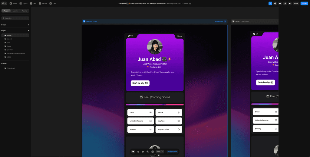 I think I spent the better half of 2025 looking for a Squarespace alternative before settling on Framer. The other half… just learning how to use it and build a website. Components, frames, stacks. I had something put together (screenshot)… only to opt for a Framer template at the last minute, haha. I don't know, man.